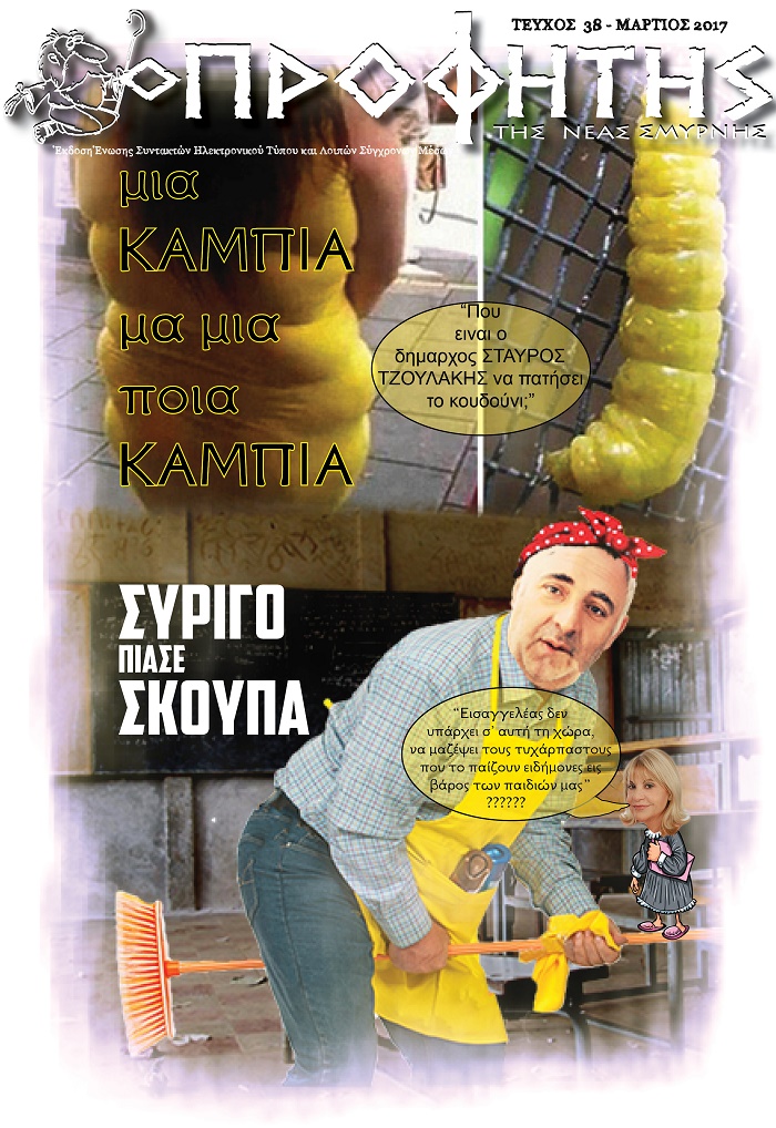 Μπορεί το εξώφυλλο να παροτρύνει σκωπτικά τον εντεταλμένο Δημοτικό Σύμβουλο να πιάσει φαράσι και σκούπα, αλλά το πρόβλημα της καθαριότητας και της φύλαξης των σχολείων της πόλης ούτε νέο είναι, ούτε εύκολα λύνεται. Το γνωρίζουν τόσο ο Δήμαρχος Τζουλάκης από τότε ακόμη που ήταν Αντιδήμαρχος Παιδείας, όσο και ο Πολύδωρος Συρίγος αλλά και οι απερχόμενοι Πρόεδροι Ν.Γαλανοπούλου και Θ.Τερζόπουλος.